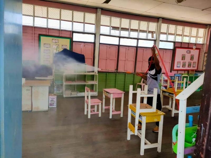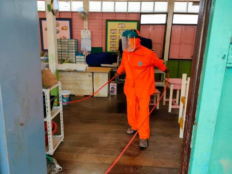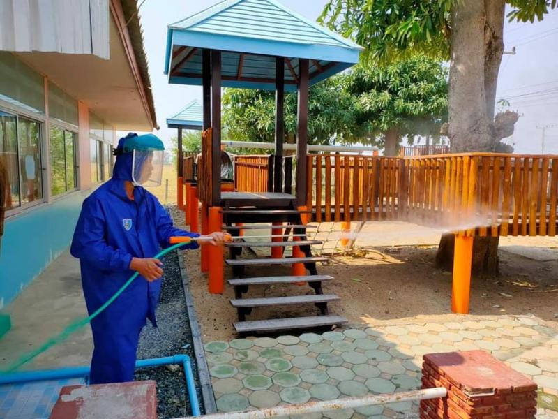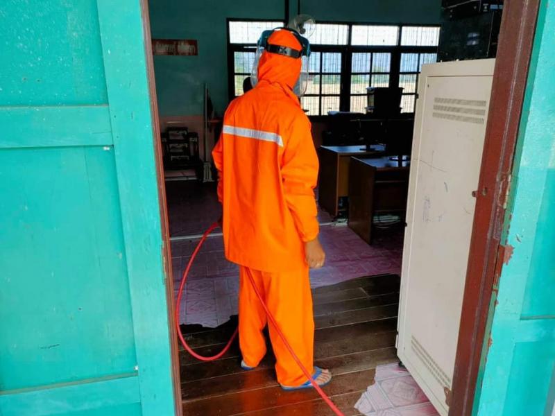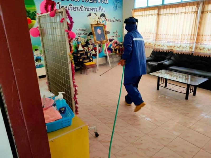 พ่นน้ำยาฆ่าเชื้อโควิค 19 เพื่อเตรียมการก่อนการเปิดเรียน 1 ก.พ.2564 ณ โรงเรียนบ้านพรมทิน ด้วยความห่วยใยจากท่านนายกทวีศักดิ์ ข้อกิ่ง นายกองค์การบริหารส่วนตำบลหลุมข้าว