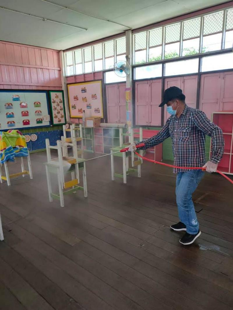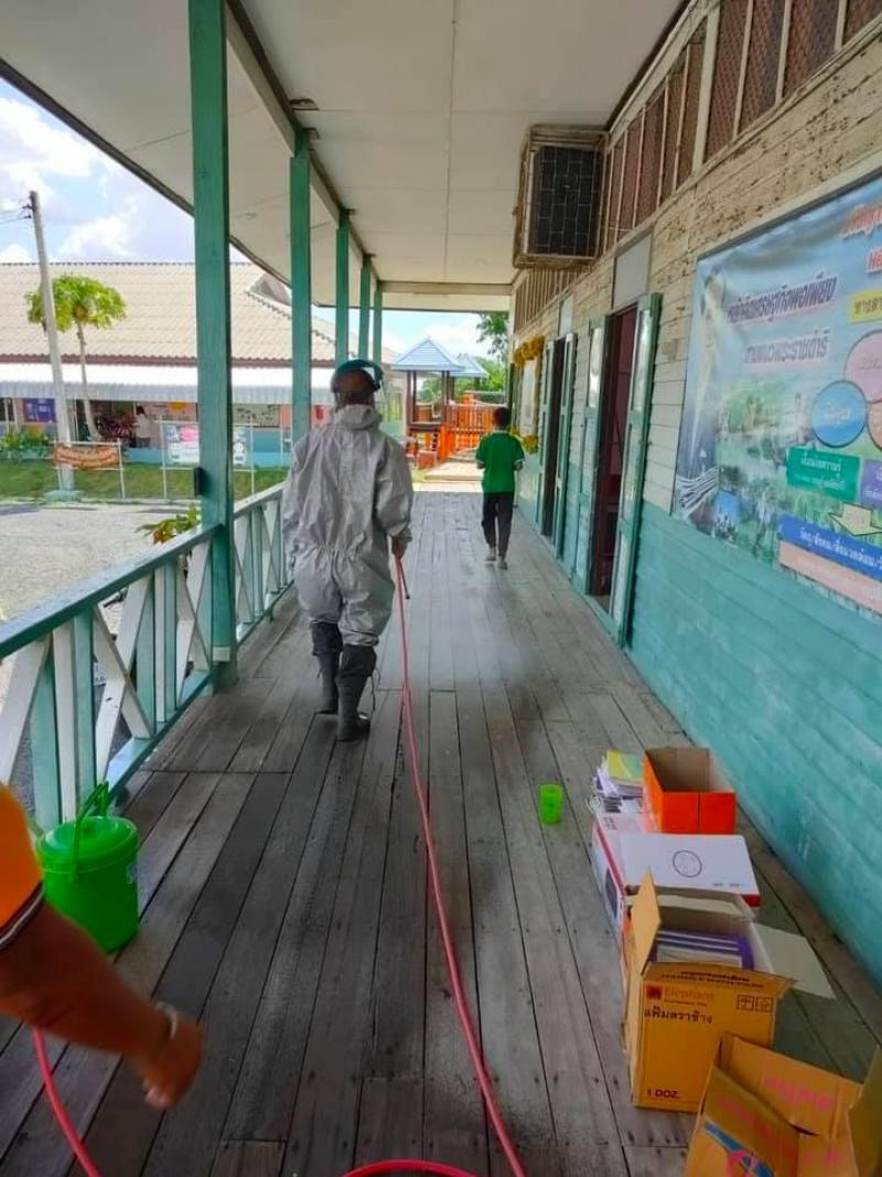 งานป้องกัน อบต.หลุมข้าว ดำเนินการล้างทำความสะอาดและฉีดพ่นยาฆ่าเชื้อโควิด ณ โรงเรียนบ้านพรหมทิน หมู่ที่ 10 ต.หลุมข้าว อ.โคกสำโรง จ.ลพบุรี