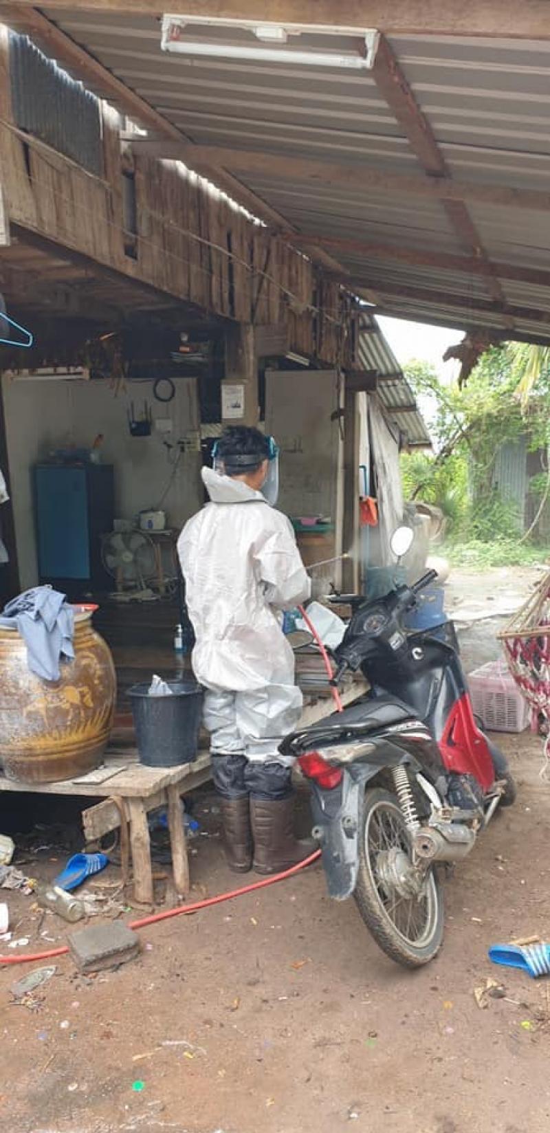 องค์การบริหารส่วนตำบลหลุมข้าวออกหน่วยฉีดพ่นฆ่าเชื้อโควิค-19อย่างเร่งด่วนปฏิบัติงานเชิงรุกเพื่อทำความสะอาดฆ่าเชื้อโควิค-19 เมื่อพบผู้ติดเชื้อโควิค-19ในพื้นที่หมู่ 3