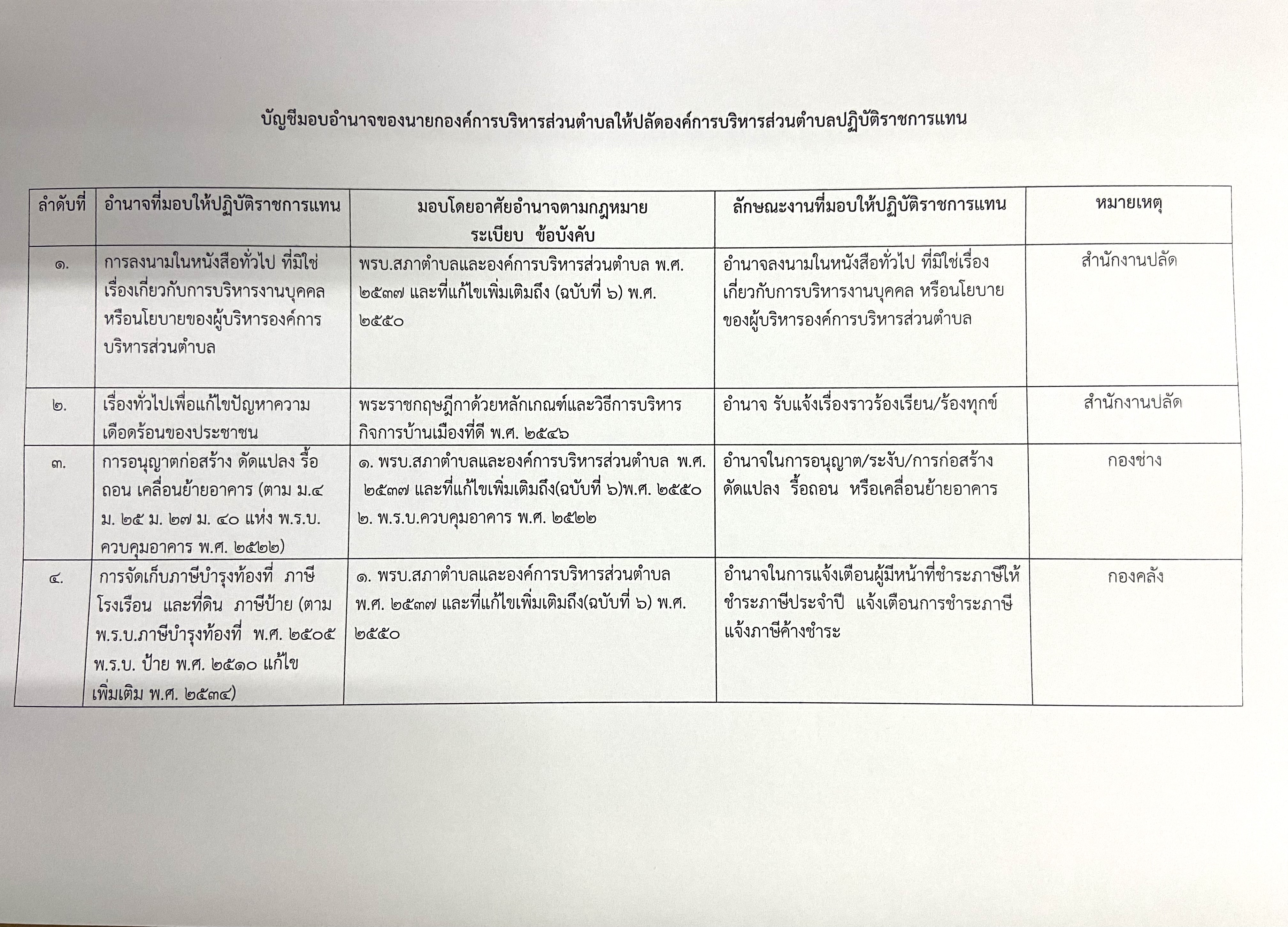 คำสั่ง และ ประกาศมอบอำนาจของนายกองค์การบริหารส่วนตำบล ให้ปลัดองค์การบริหารส่วนตำบลปฏิบัติราชการแทน