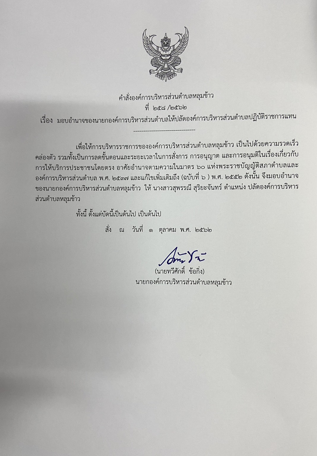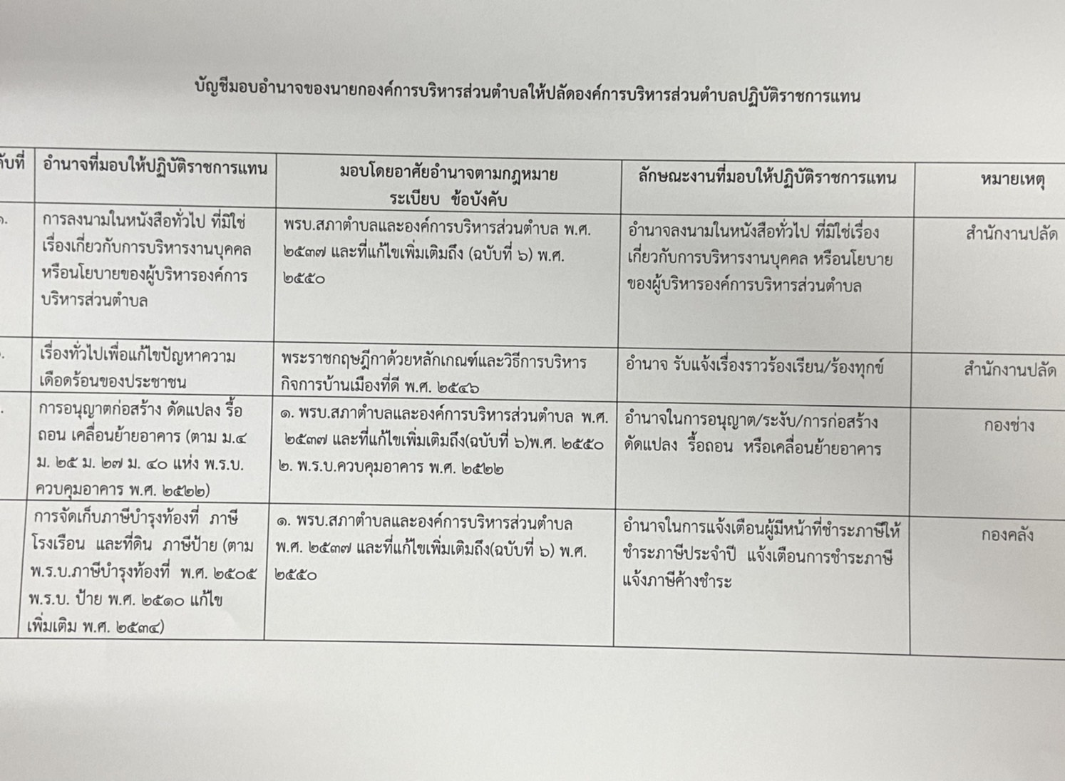 คำสั่ง และ ประกาศมอบอำนาจของนายกองค์การบริหารส่วนตำบล ให้ปลัดองค์การบริหารส่วนตำบลปฏิบัติราชการแทน