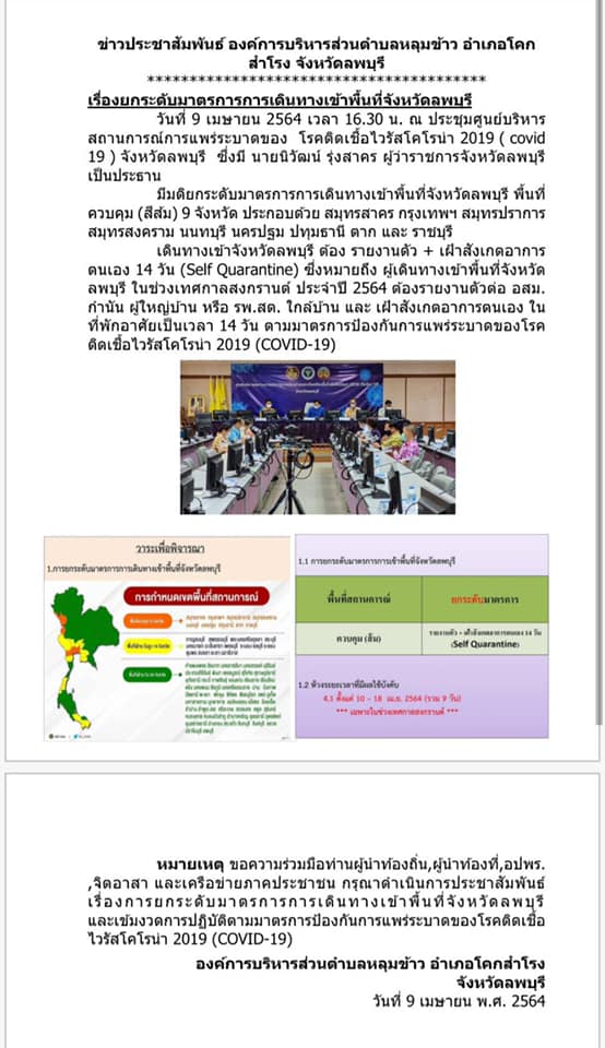 ชื่อเรื่อง : ประชาสัมพันธ์ เรื่อง ยกระดับมาตรการการเดินทางเข้าพื้นที่จังหวัดลพบุรี