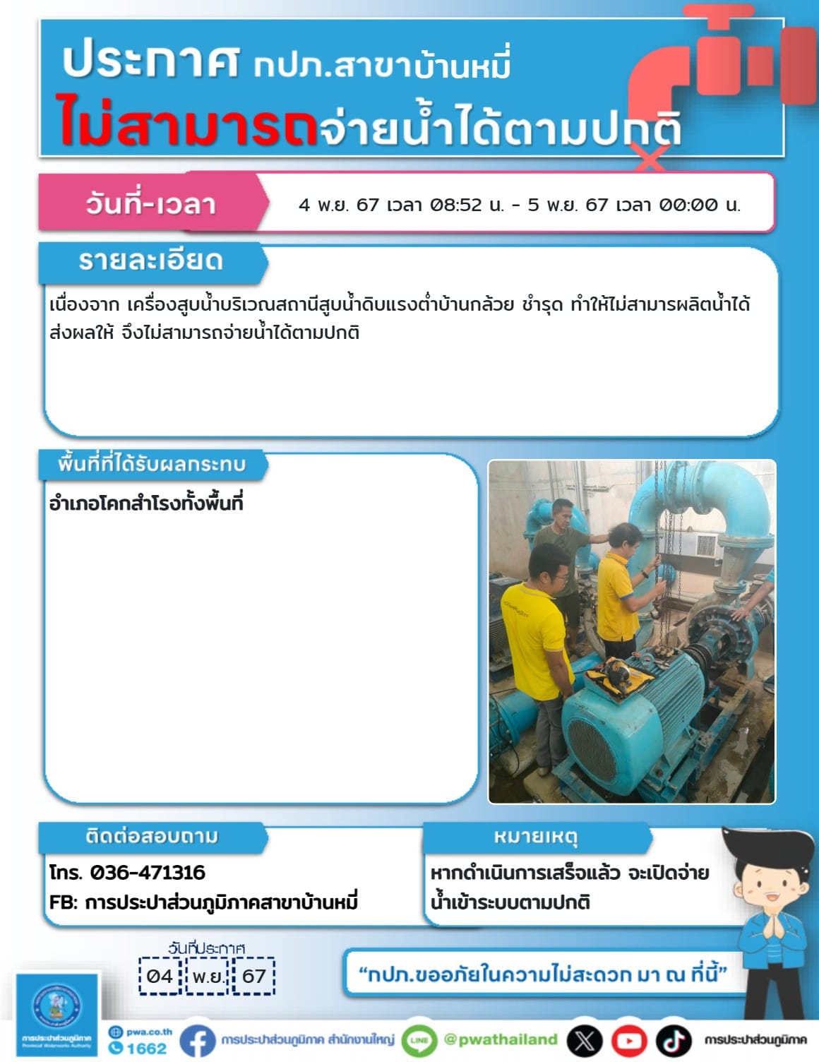 ประกาศหยุดจ่ายน้ำฉุกเฉิน