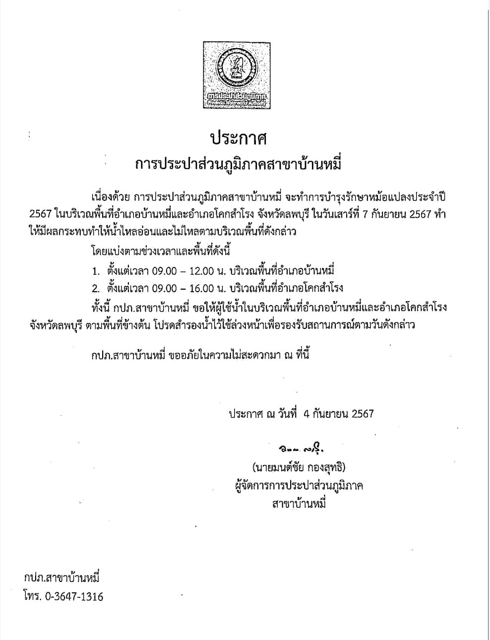 #ประกาศหยุดจ่ายน้ำ