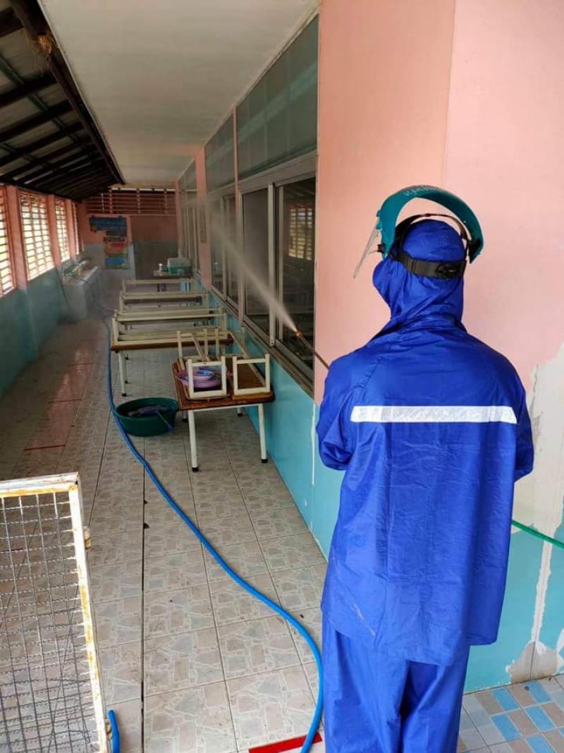 พ่นน้ำยาฆ่าเชื้อโควิค 19 เพื่อเตรียมการก่อนการเปิดเรียน 1 ก.พ.2564 ณ โรงเรียนบ้านพรมทิน ด้วยความห่วยใยจากท่านนายกทวีศักดิ์ ข้อกิ่ง นายกองค์การบริหารส่วนตำบลหลุมข้าว