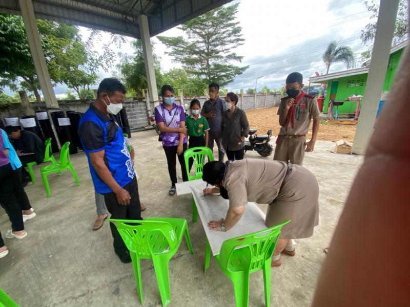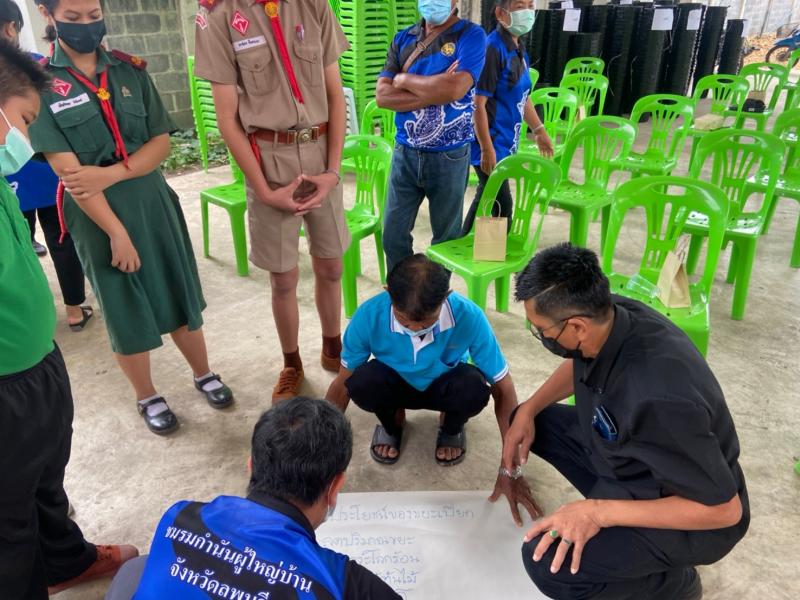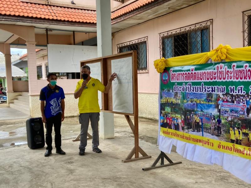 2 ให้ความรู้ในการการคัดแยกประเภทขยะมูลฝอย (ขยะอินทรีย์ ขยะรีไซเคิล ขยะอันตราย ขยะทั่วไป) กับผู้นำชุมชน และผู้แทนครัวเรือนในเขตพื้นที่