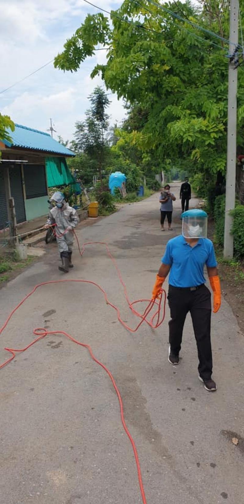 องค์การบริหารส่วนตำบลหลุมข้าวออกหน่วยฉีดพ่นฆ่าเชื้อโควิค-19อย่างเร่งด่วนปฏิบัติงานเชิงรุกเพื่อทำความสะอาดฆ่าเชื้อโควิค-19 เมื่อพบผู้ติดเชื้อโควิค-19ในพื้นที่หมู่ 3
