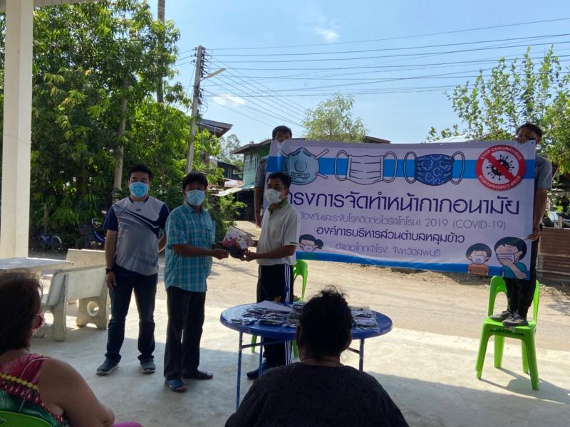 ท่านนายกทวีศักดิ์ ข้อกิ่ง พร้อม ท่านรองนายกสุรไกร น้อยตั้ง พนักงานส่วนตำบลหลุมข้าวจัดทำโครงการจัดทำหน้ากากอนามัยเพื่อป้องกันและระงับโรคติดต่อไวรัสโคโรนา 2019 (COVID-19)ออกแจกหน้ากากอนายมัยให้กับประชาชนในหมู่4,หมู่5,หมู่6,หมู่7,หมู่8