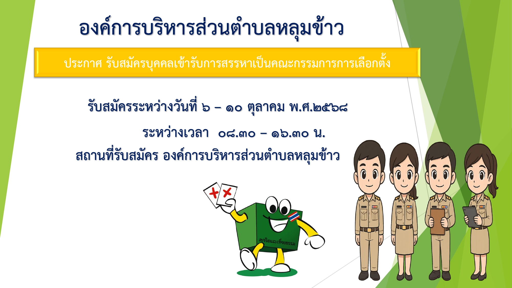ชื่อเรื่อง : ประกาศรับสมัครบุคคลเข้ารับการสรรหาเป็นคณะกรรมการการเลือกตั้ง ประจำองค์การบริหารส่วนตำบลหลุมข้าว